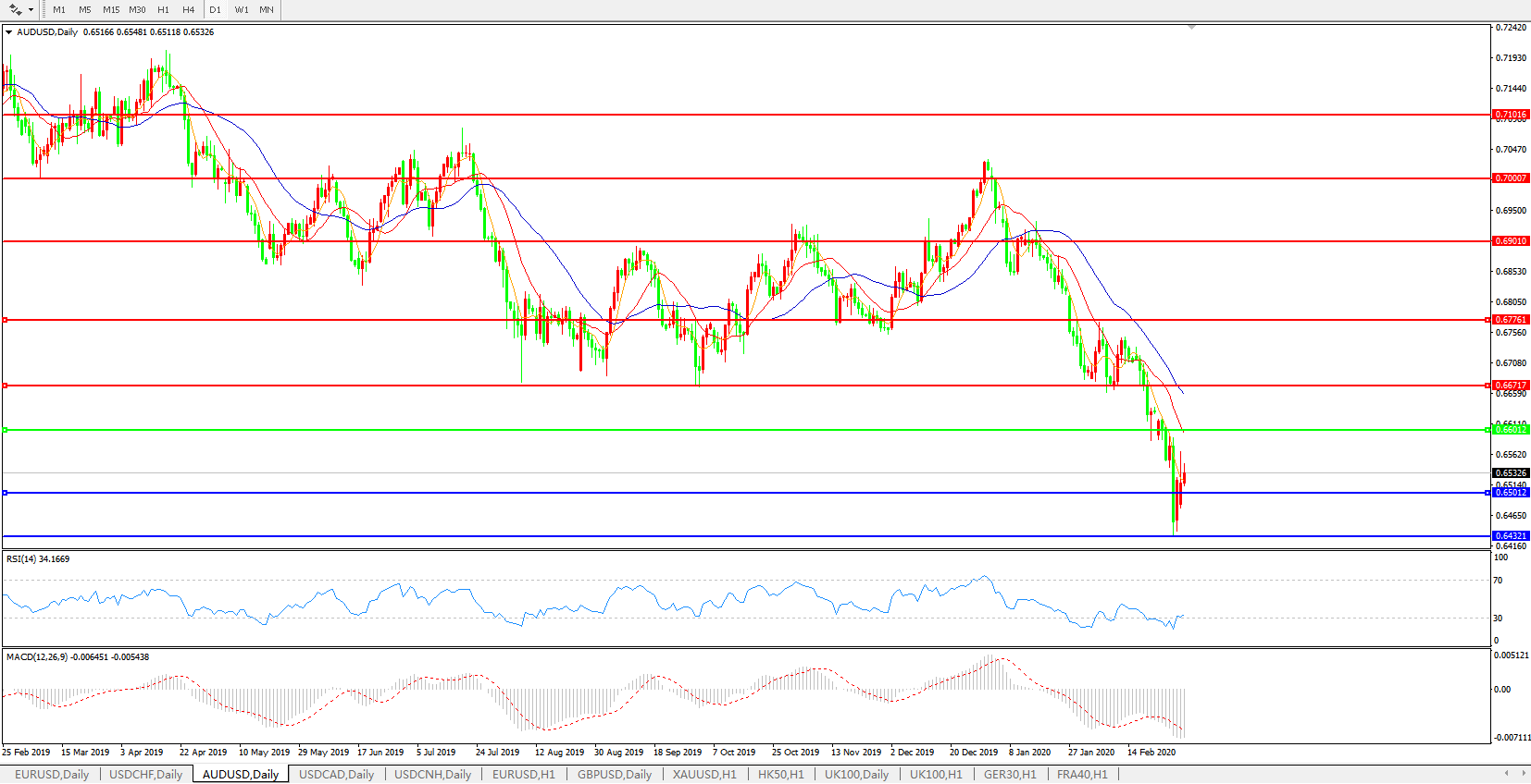 澳元兑美元AUDUSD 日线图: