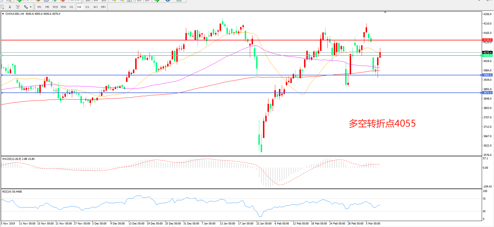 多空转折点:4055.00