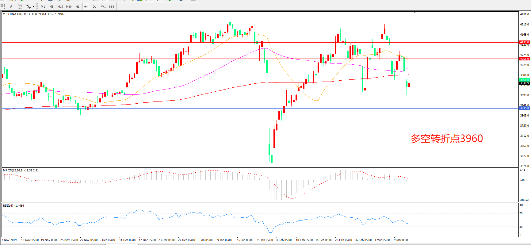 沪深300  CHINA 300   4小时图