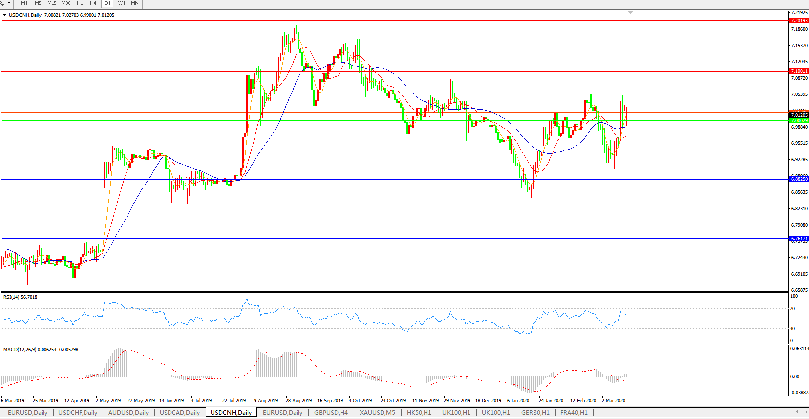 交易策略: 在7.0000之上,看涨,目标价位为7.1000,然后为7.2000。