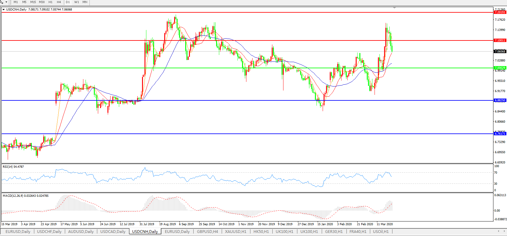 美元兑人民币USDCNH 日线图:
