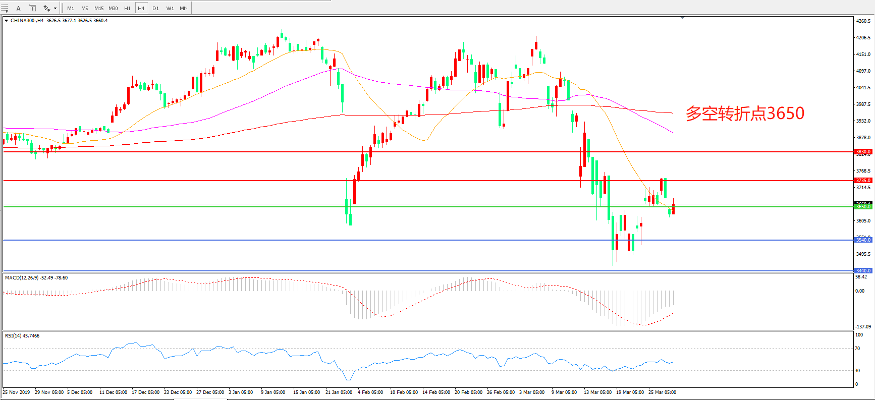 沪深300  CHINA 300   4小时图