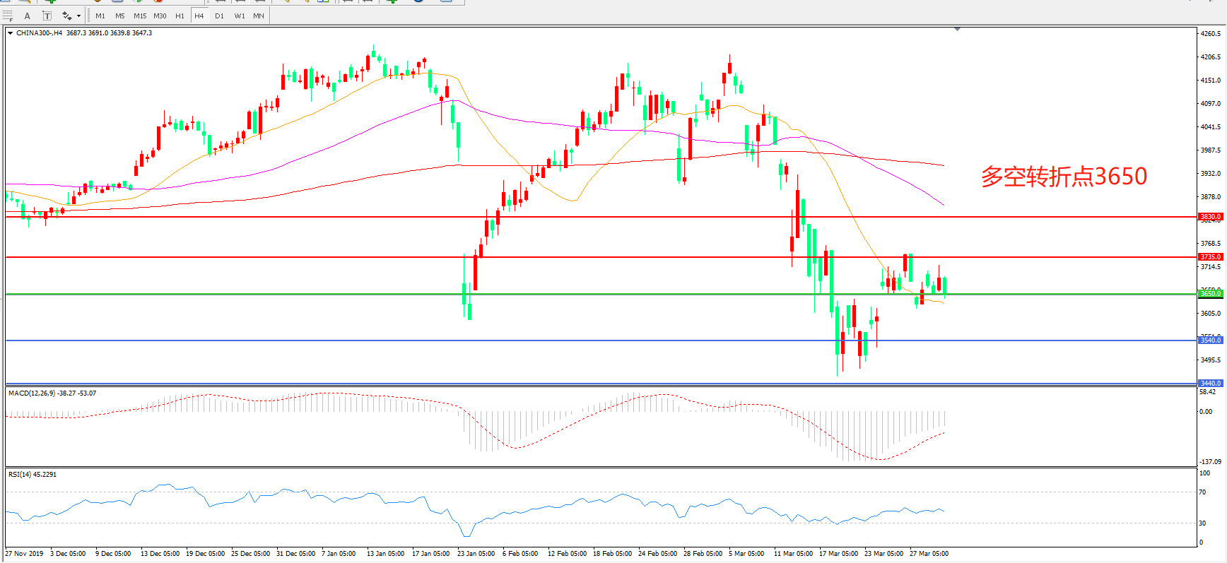 沪深300  CHINA 300   4小时图