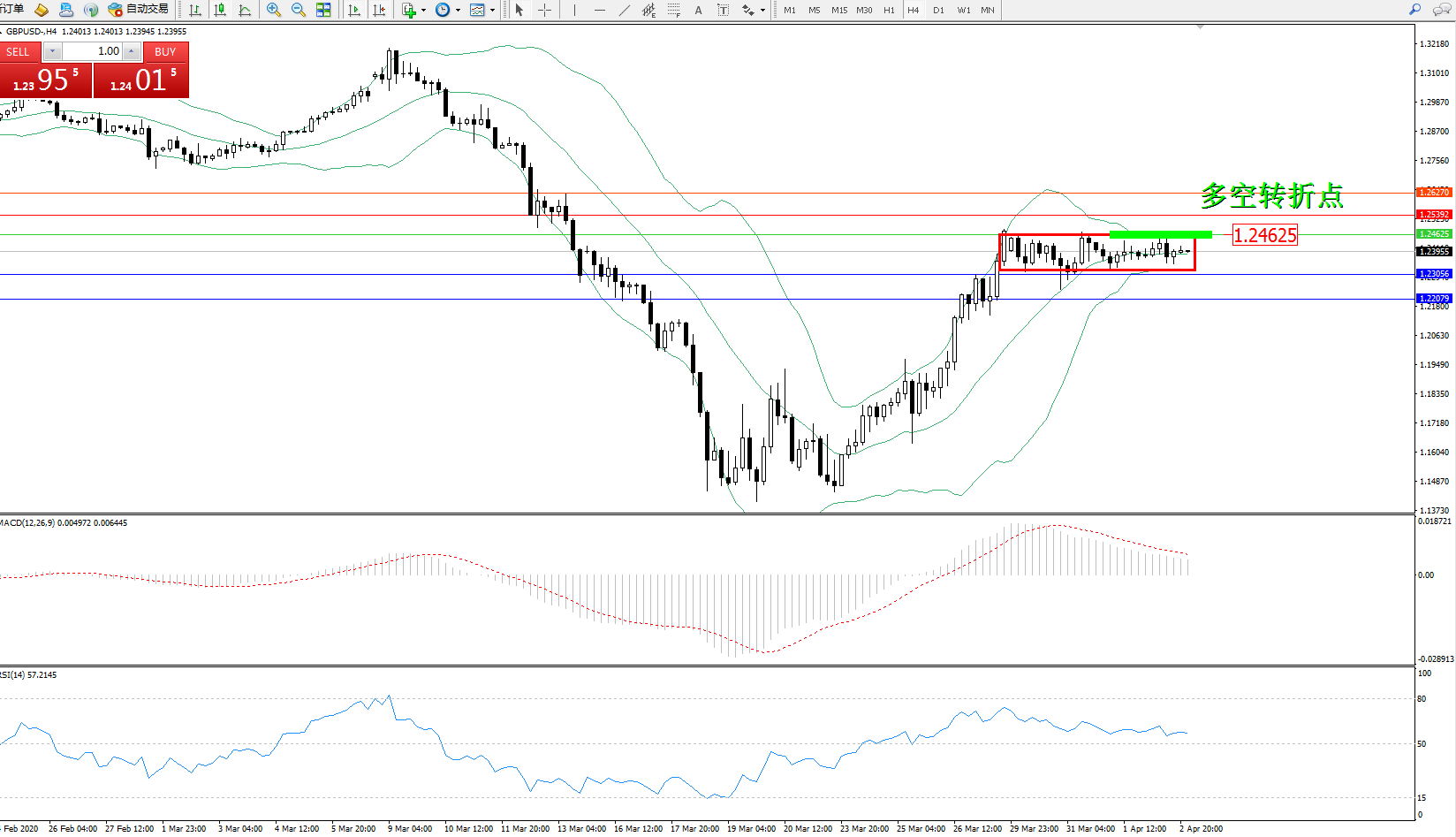 交易策略:1.24625下方看跌,目标1.23056、1.22079