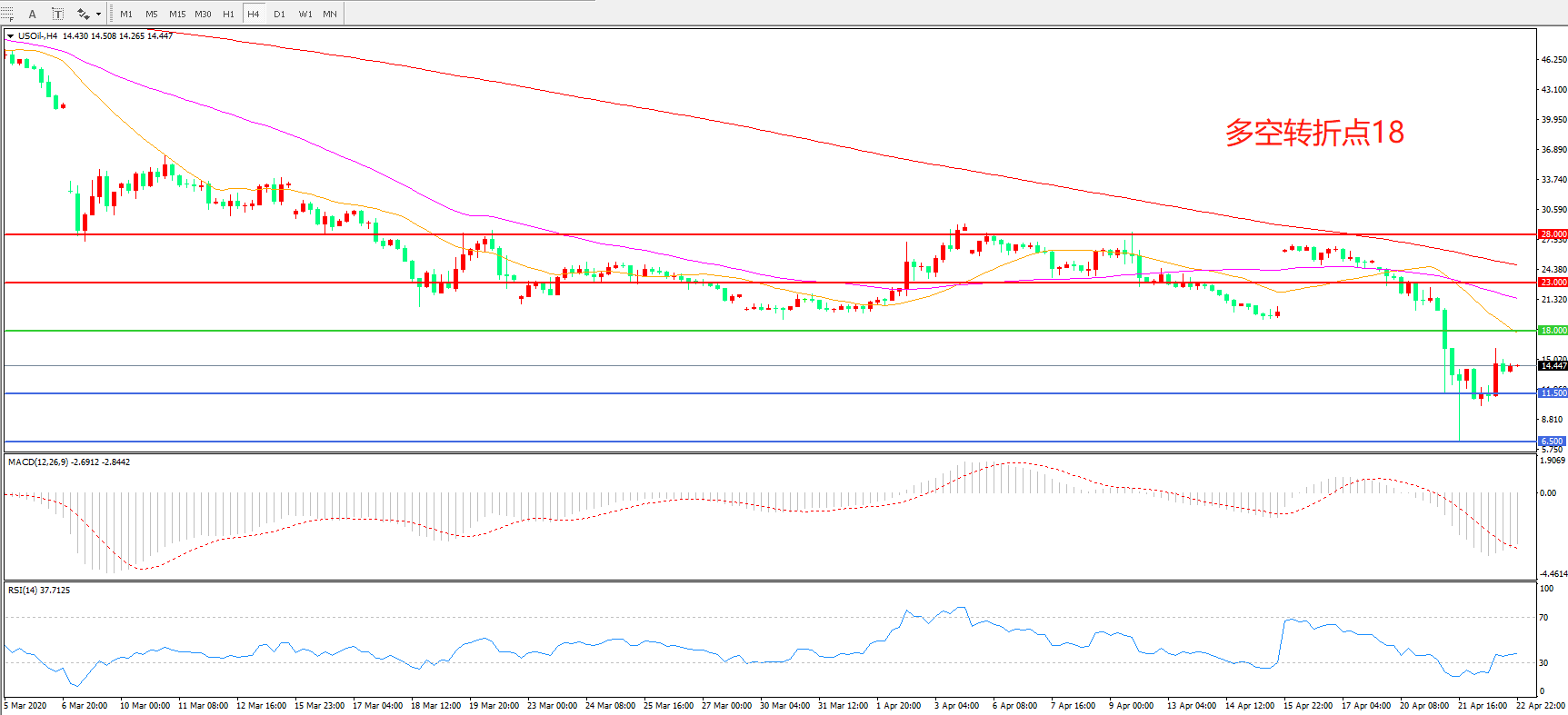 美国原油USOIL 4小时图