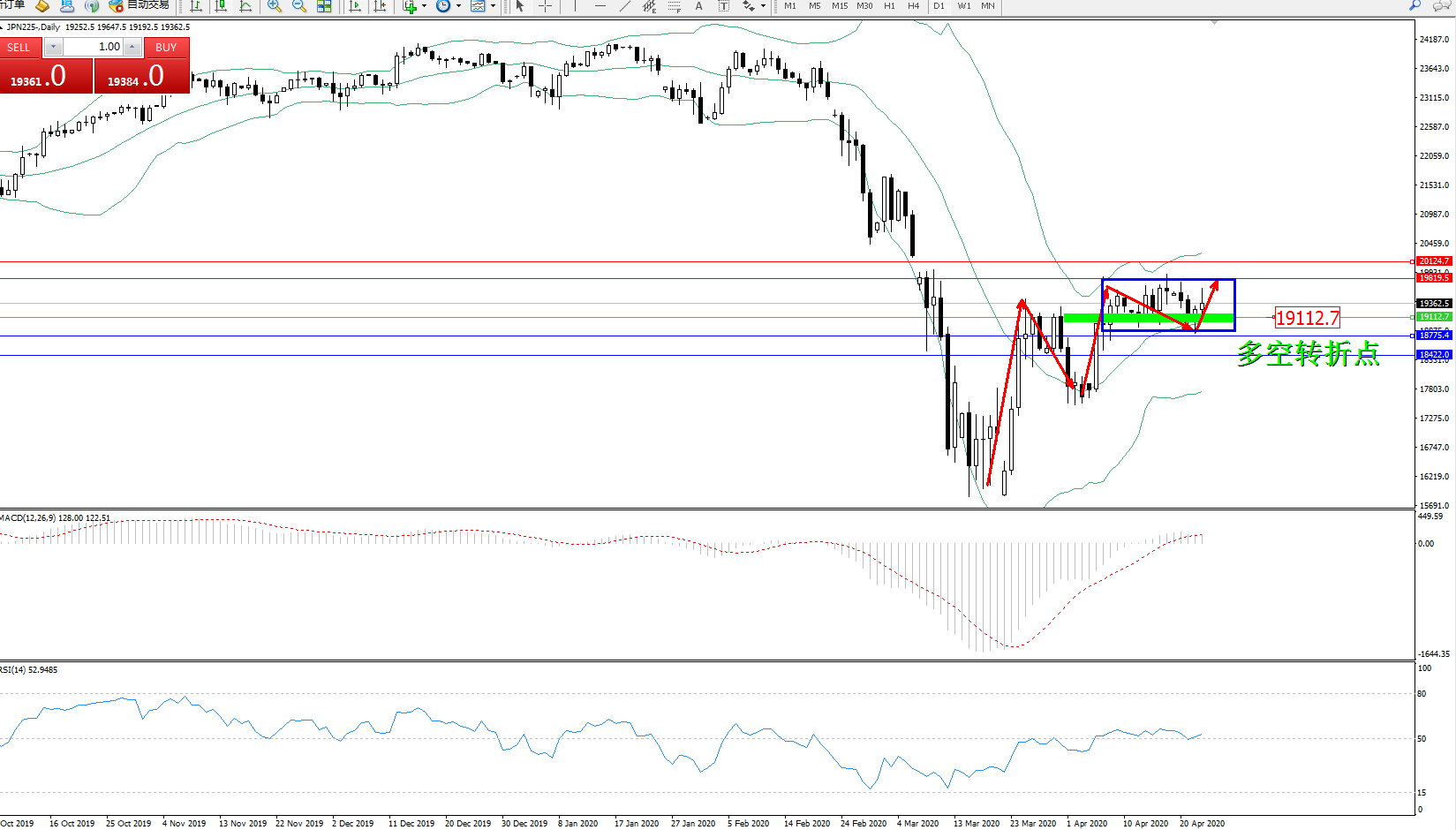 交易策略:19112上方看涨,目标19819、20124