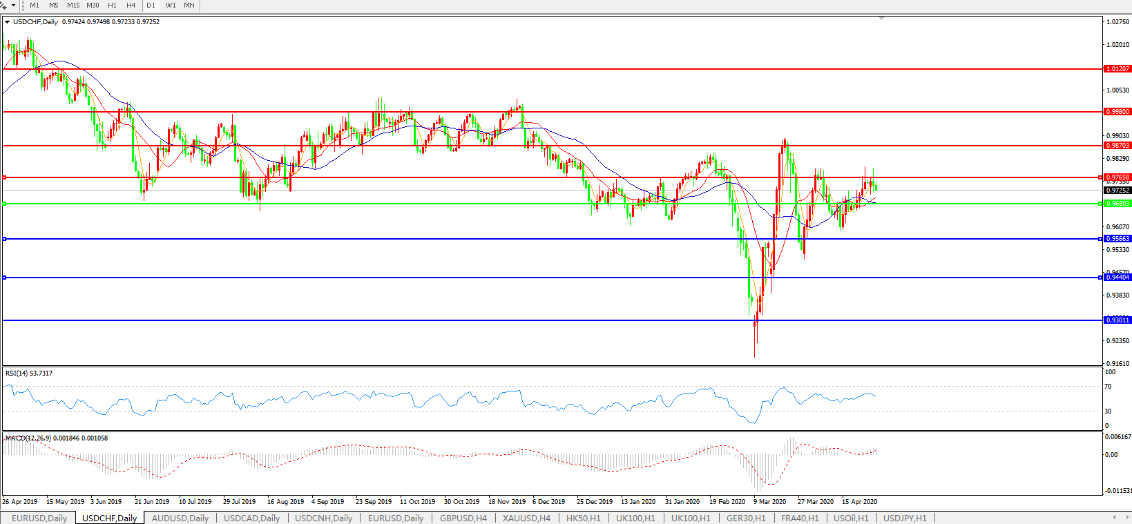 备选策略:0.9680下方看跌,目标0.9565、0.9440