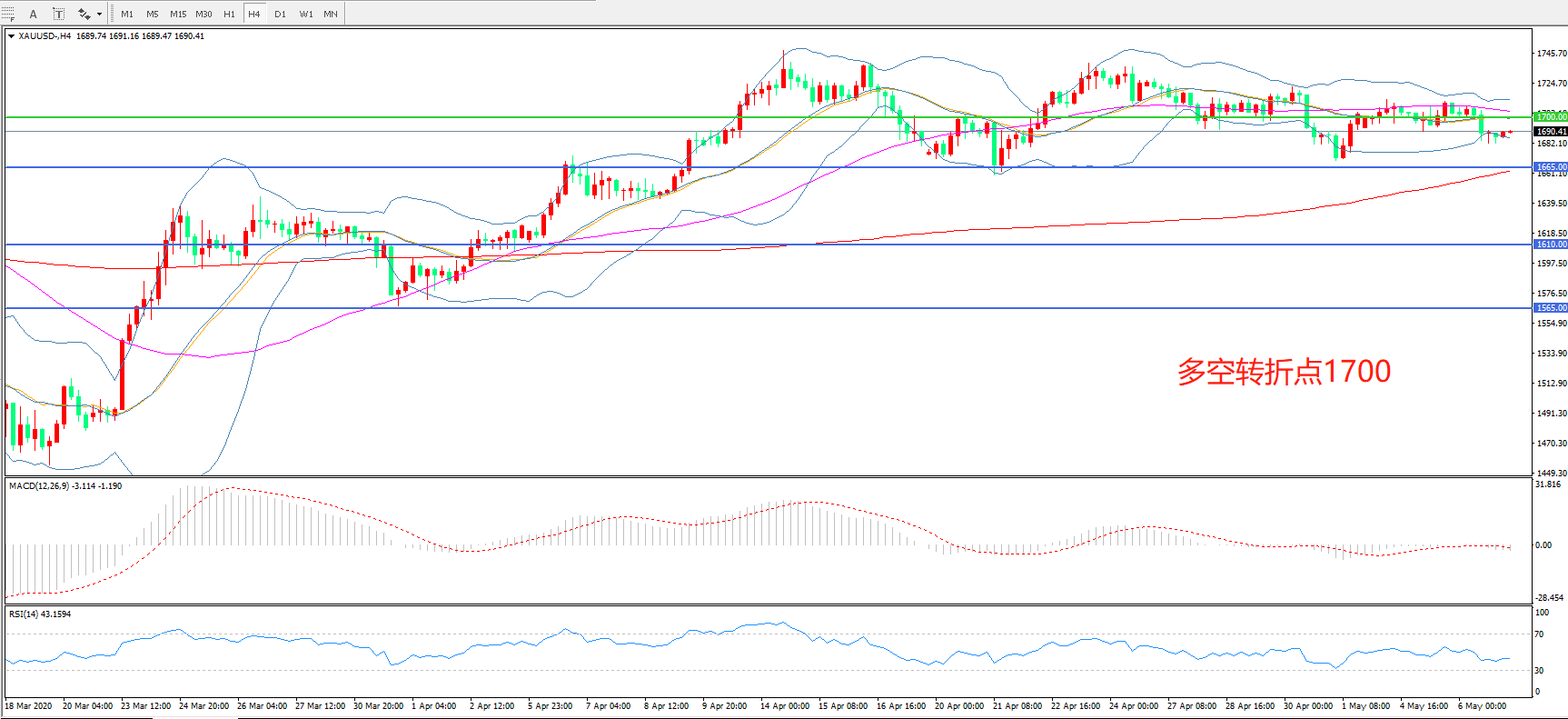 多空转折点:1700.00