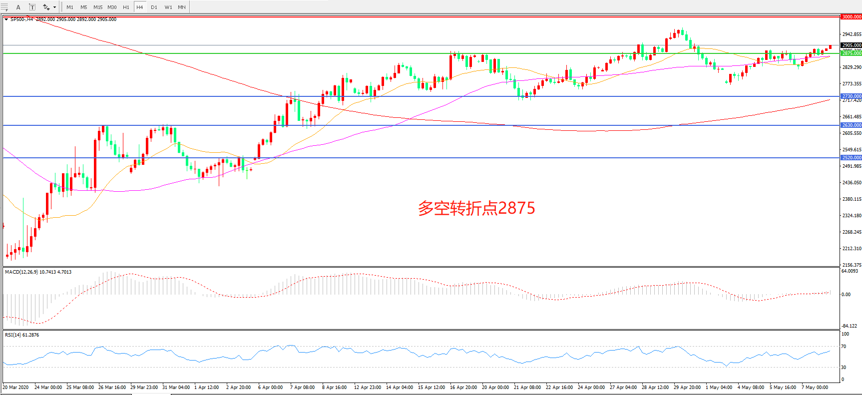 标普500 SP500 4小时图