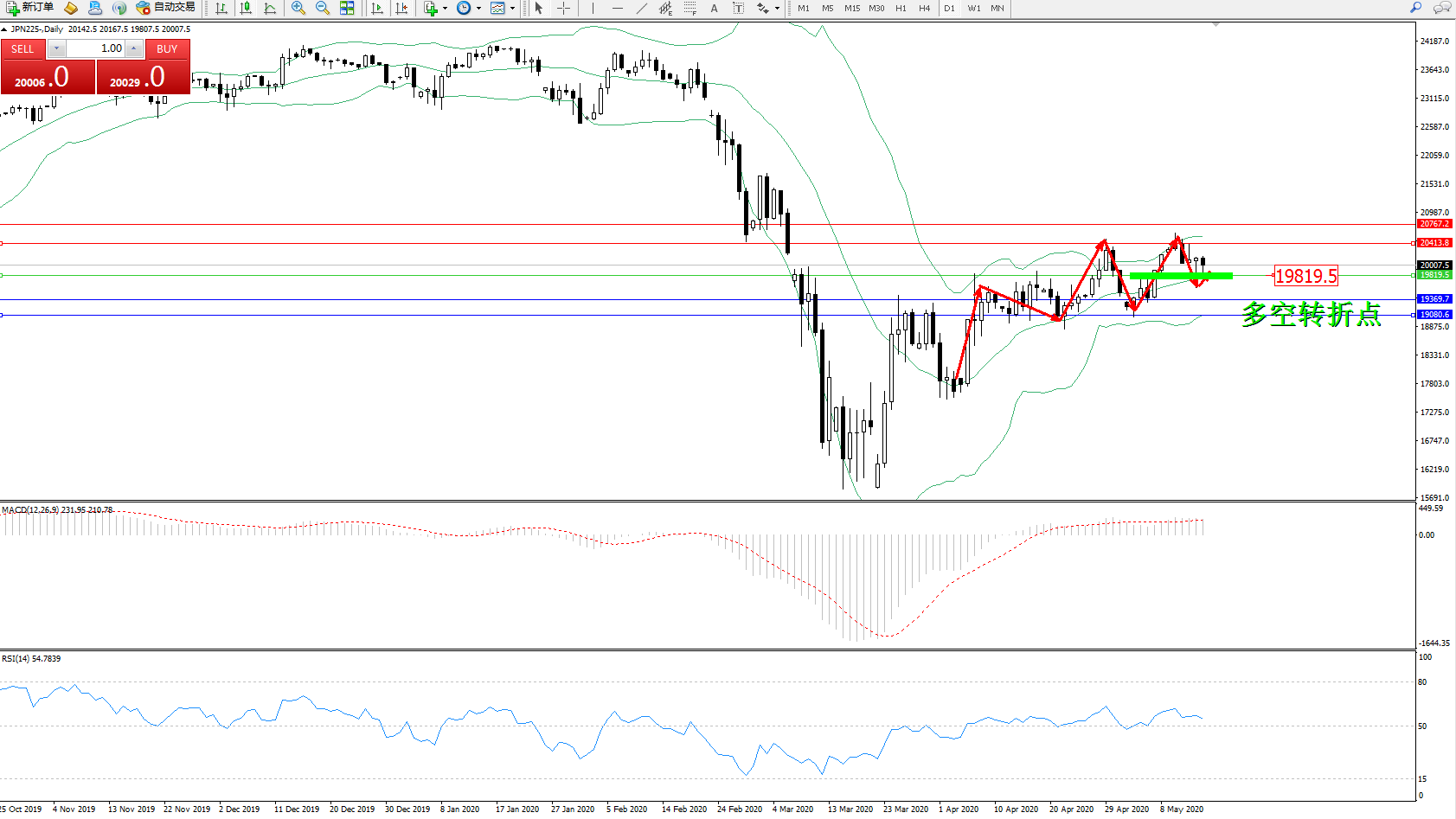 日经225指数515日(周五)收盘上涨104.72点,涨幅0.53%,报20019.50点。有关美联储必须采取负利率来降低赤字成本的说法似乎站不住脚;虑到美联储为缓解融资市场压力所做的所有工作,包括与外国央行建立互换机制和贴现窗口措施,美联储不太可能支持可能导致流动性紧张的举措。投资者似乎开始看跌美国股市,贸易关系继续向着恶化的方向发展,来自美国的数据非常黯淡,美国国债上涨,收益率几乎全线下跌。日本私营部门顾问向首相建议:政府应该采取必要的经济措施,同时关注经济增长、失业率和财政债务,提议帮助旅游、餐饮、娱乐等行业摆脱疫情重灾区,政府应该制定基本方针,开展经济活动和预防冠状病毒传播,同时为第二、第三波病毒感染做好准备。日本央行今日购买了15亿日元的日本房地产投资信托基金。