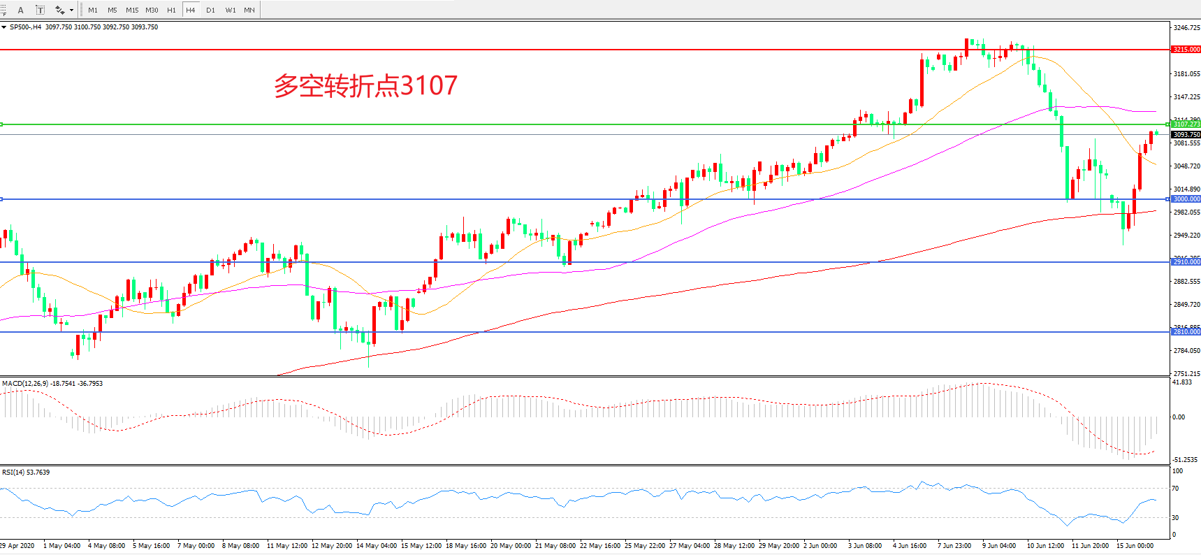 多空转折点:3107.00