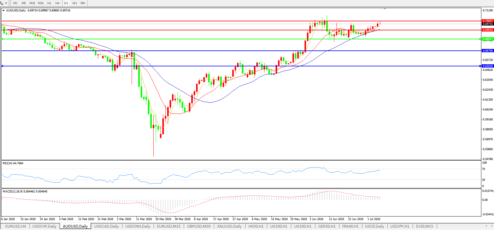 澳元兑美元AUDUSD 日线图: