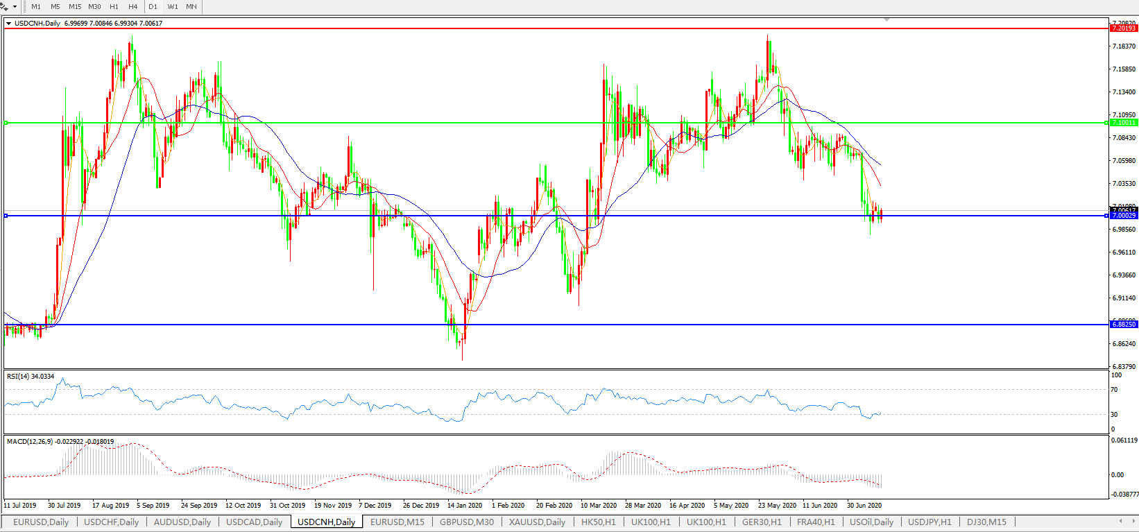 美元兑人民币USDCNH    日线图: