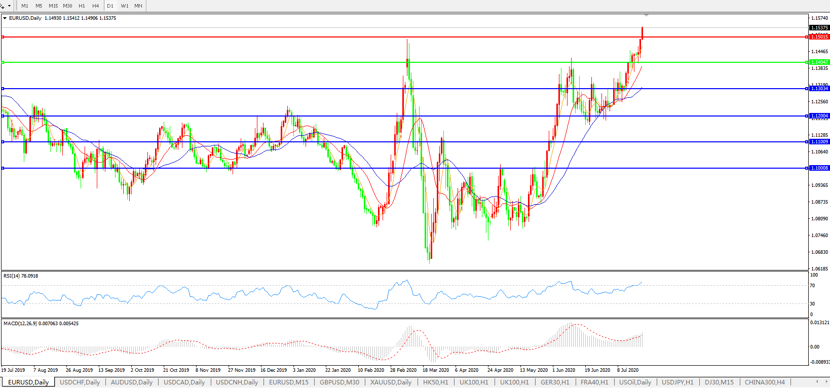 欧元兑美元EURUSD 日线图: