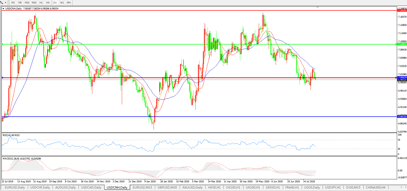 美元兑人民币USDCNH    日线图: