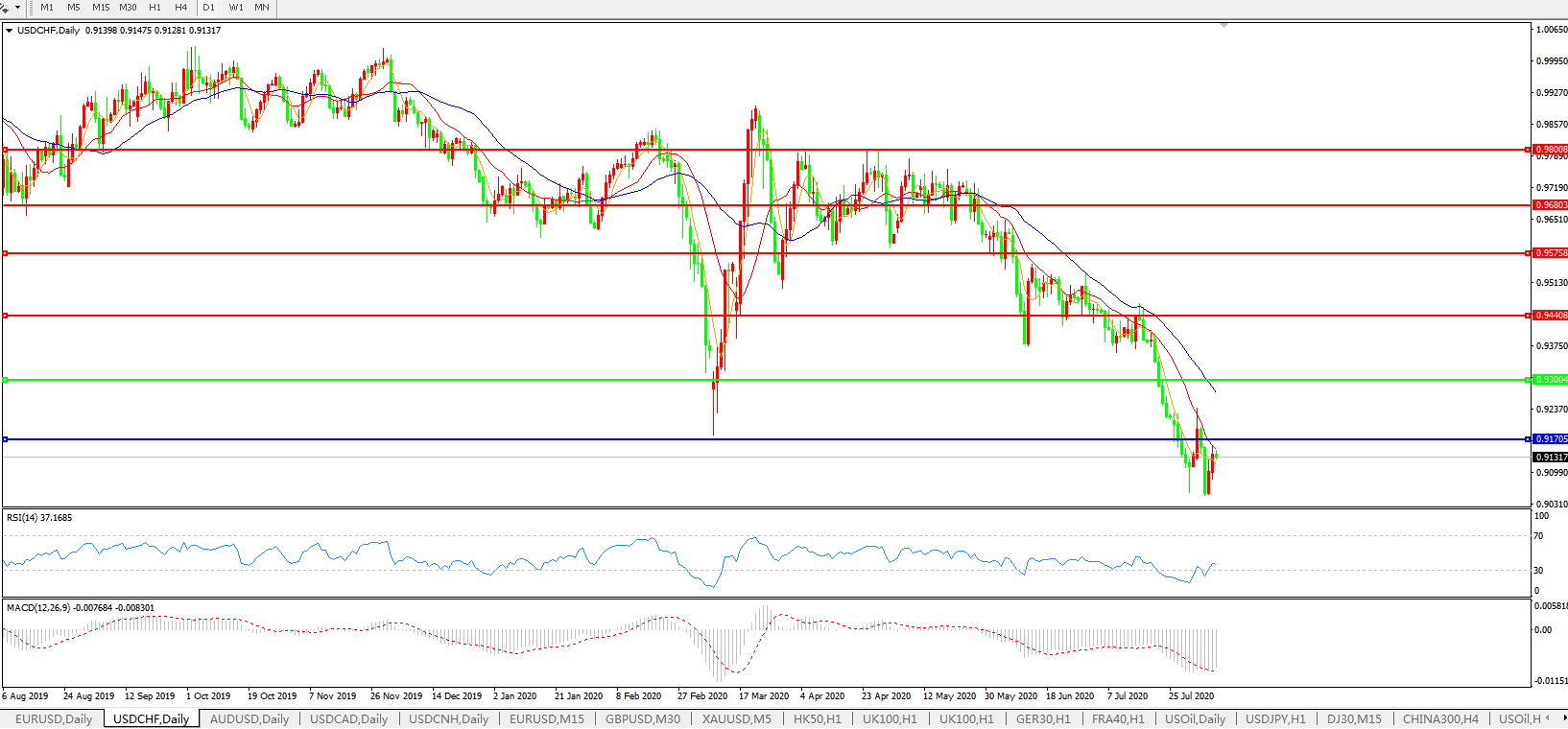 美元兑瑞郎USDCHF 日线图: