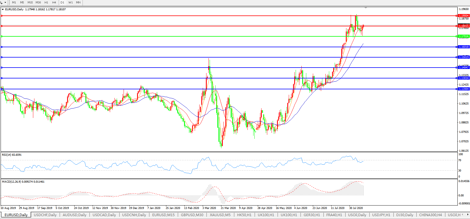 欧元兑美元EURUSD 日线图: