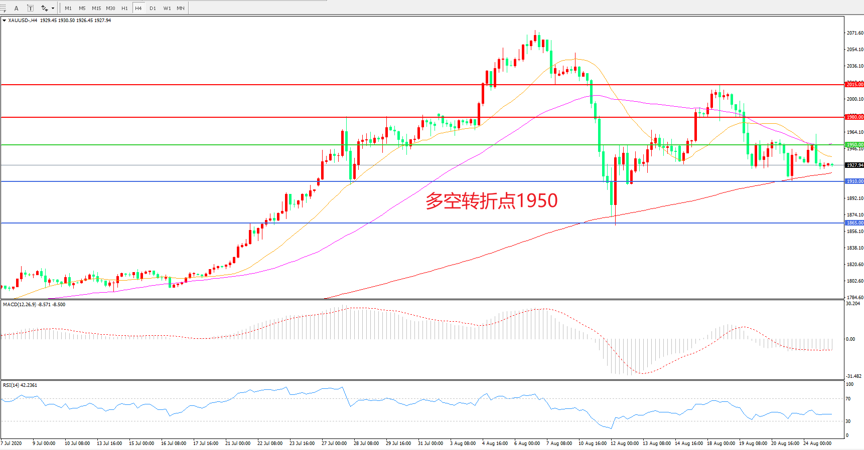 交易策略: 在1950.00之下看跌,目标1910.00   1865.00