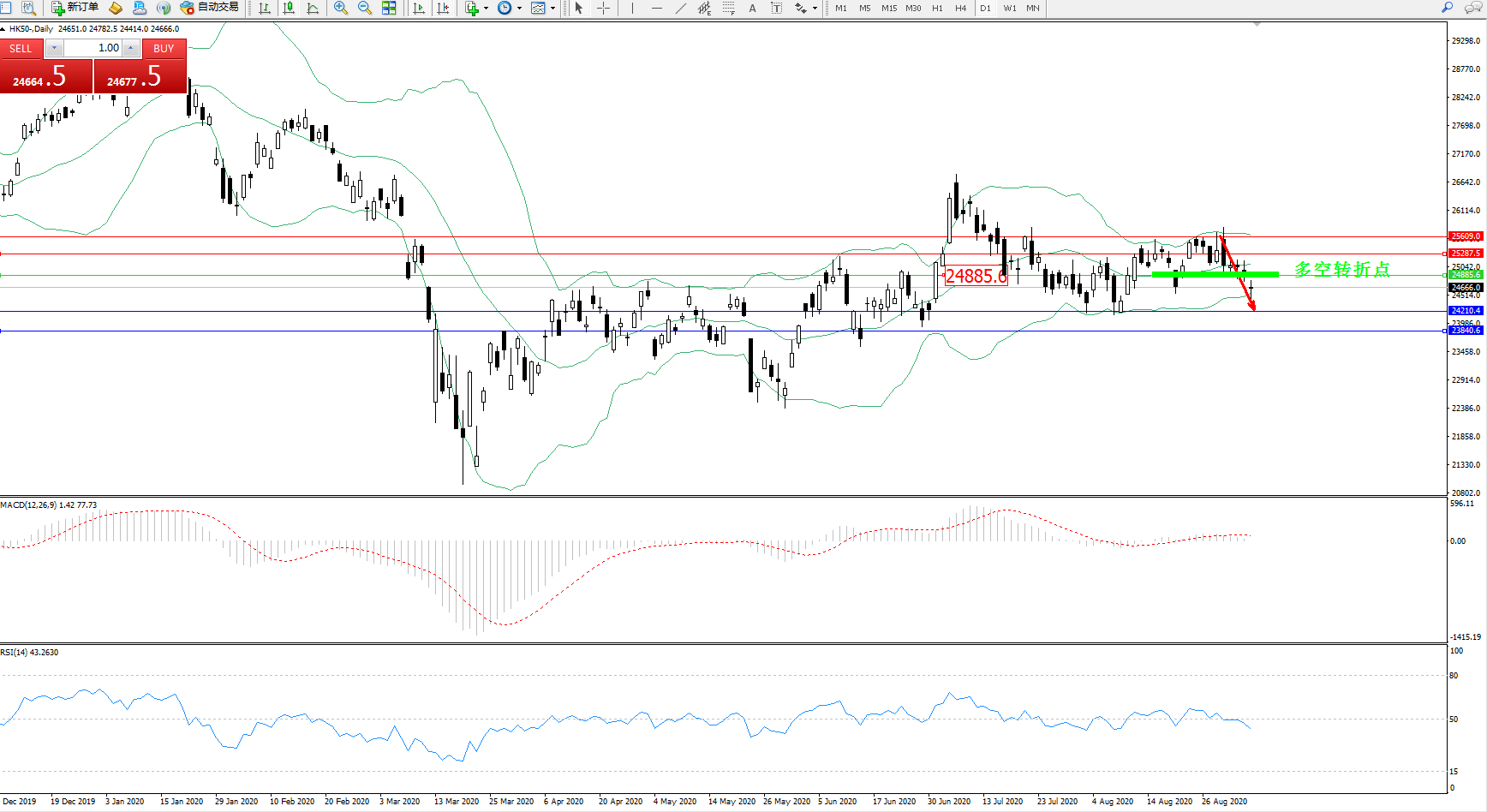 交易策略:24885下方看跌,目标24210、23840