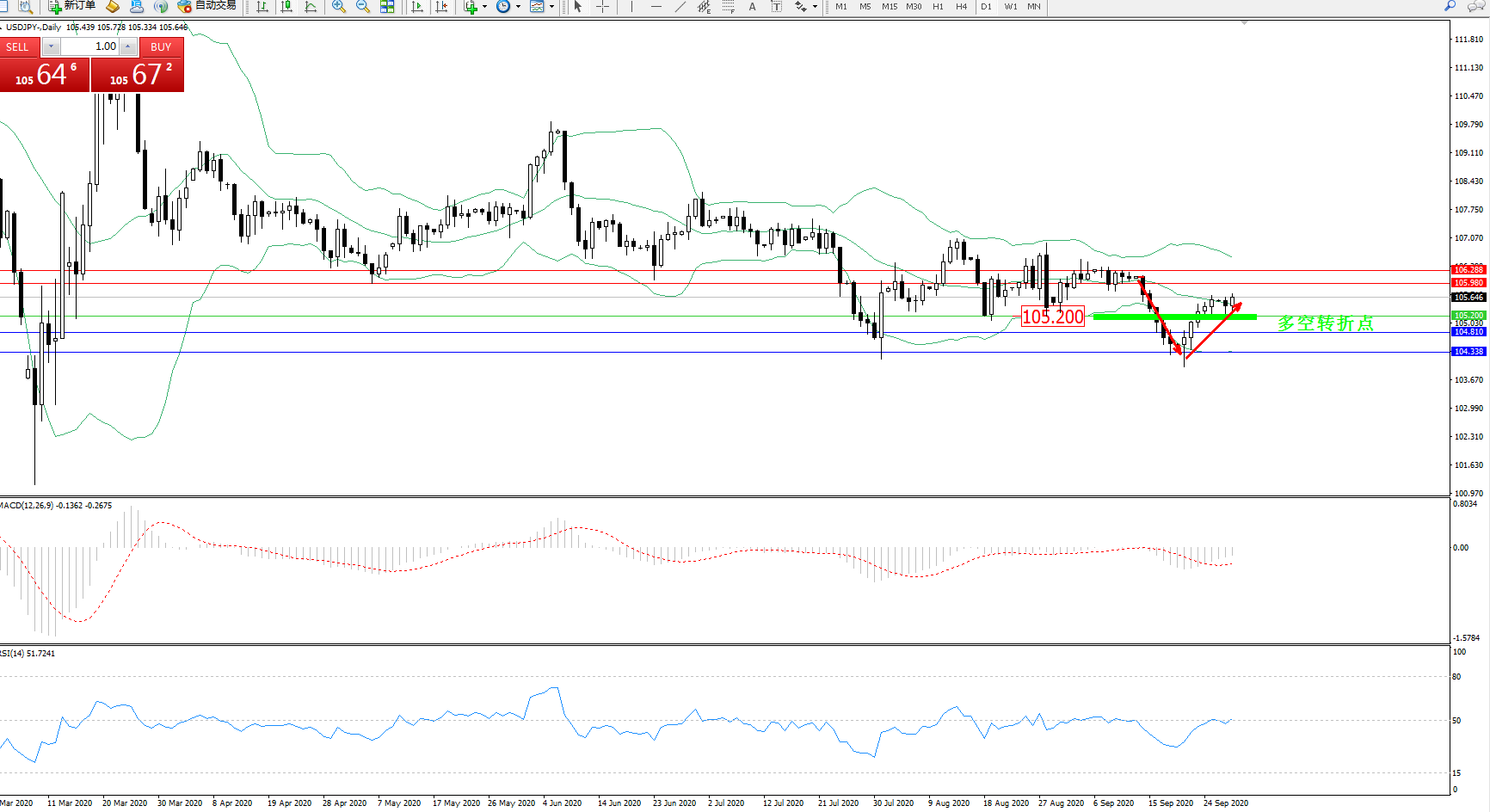 多空转折点:105.200