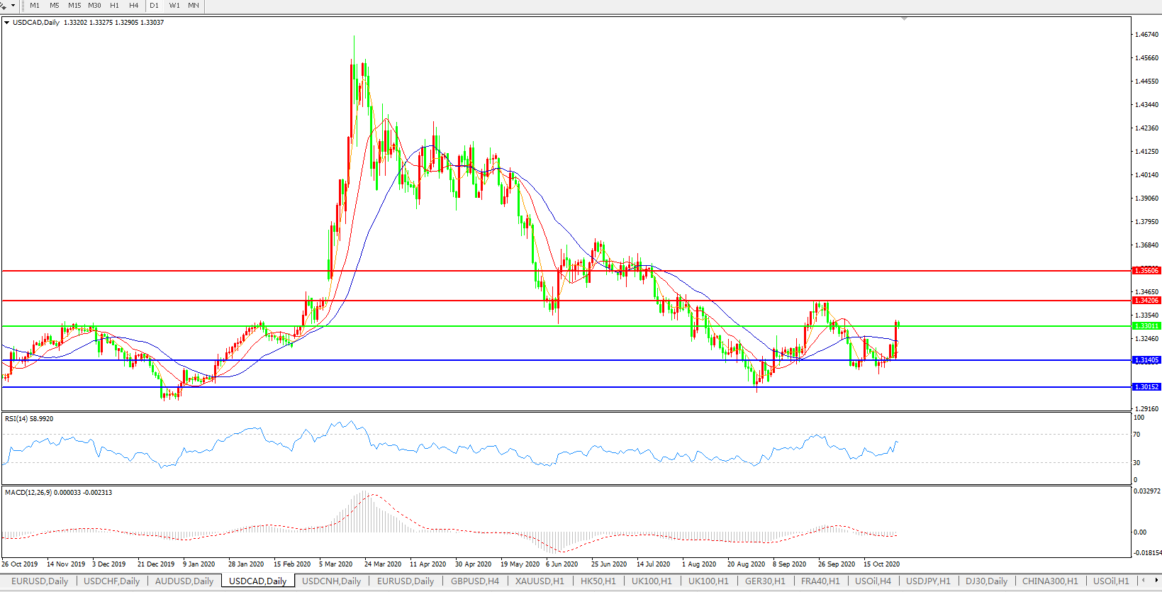 交易策略:在1.3300之上,看涨,目标价位为1.3420、1.3560