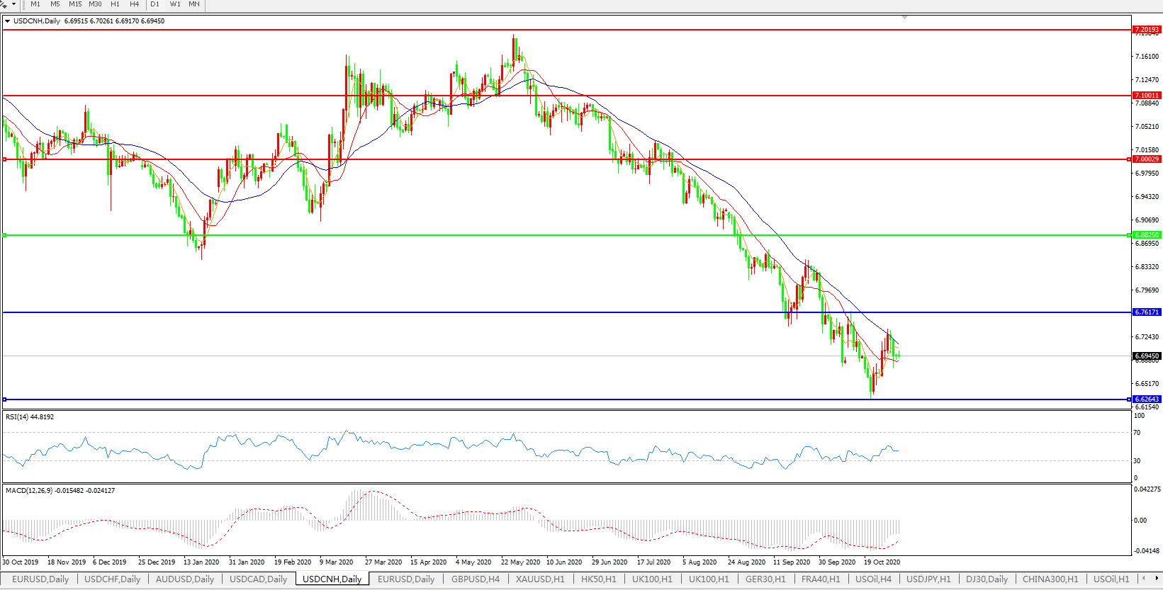 美元兑人民币USDCNH    日线图: