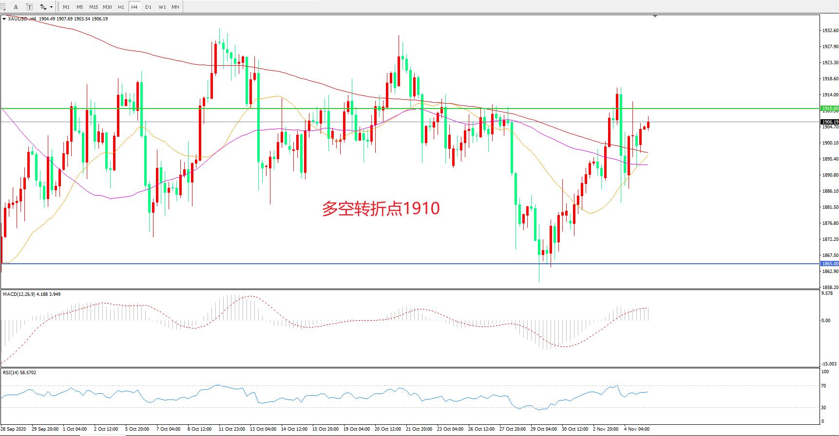 多空转折点:1910.00