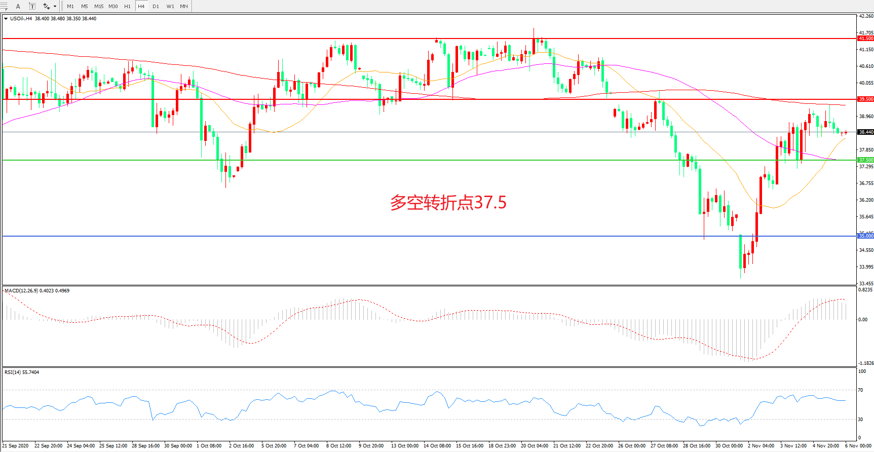 多空转折点:37.50