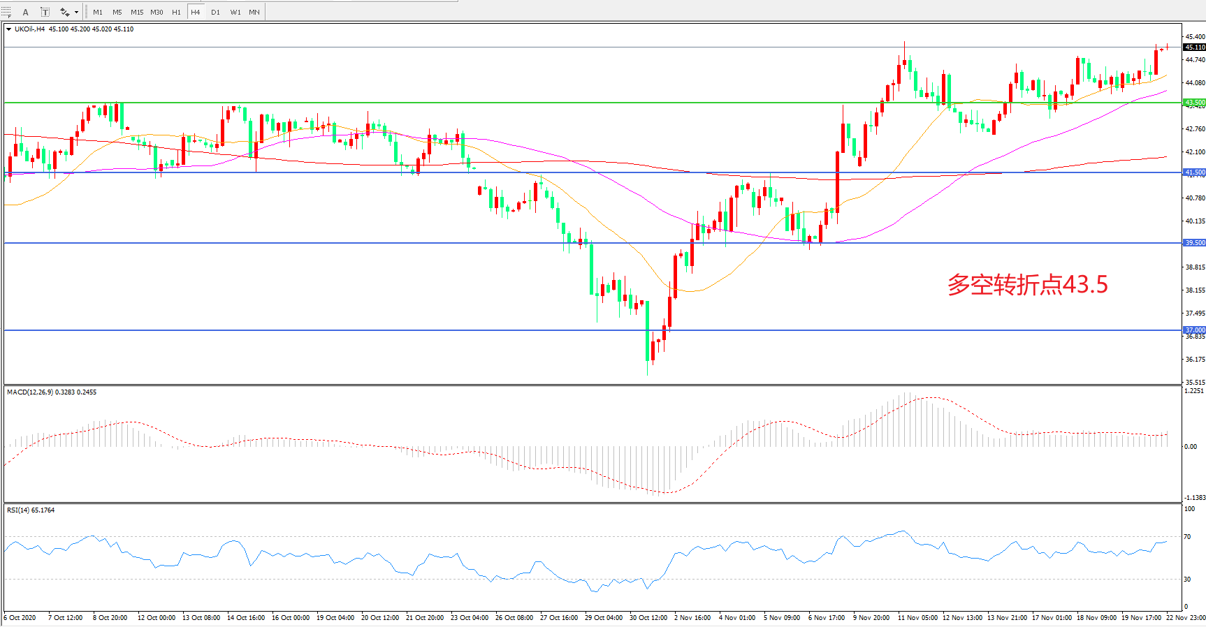 多空转折点:43.50