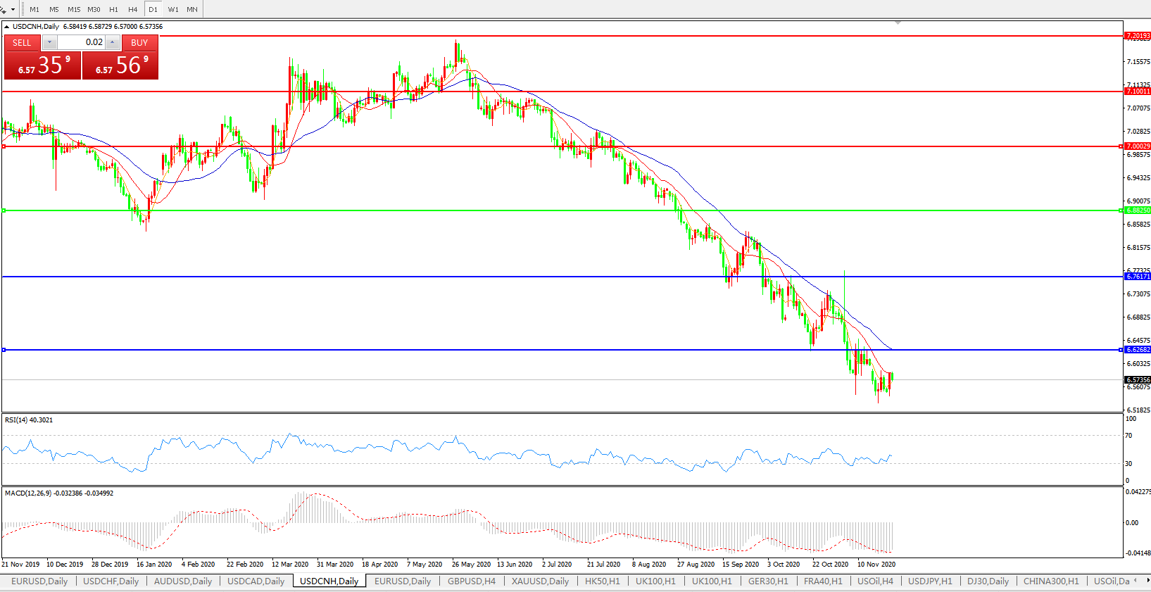 美元兑人民币USDCNH 日线图:
