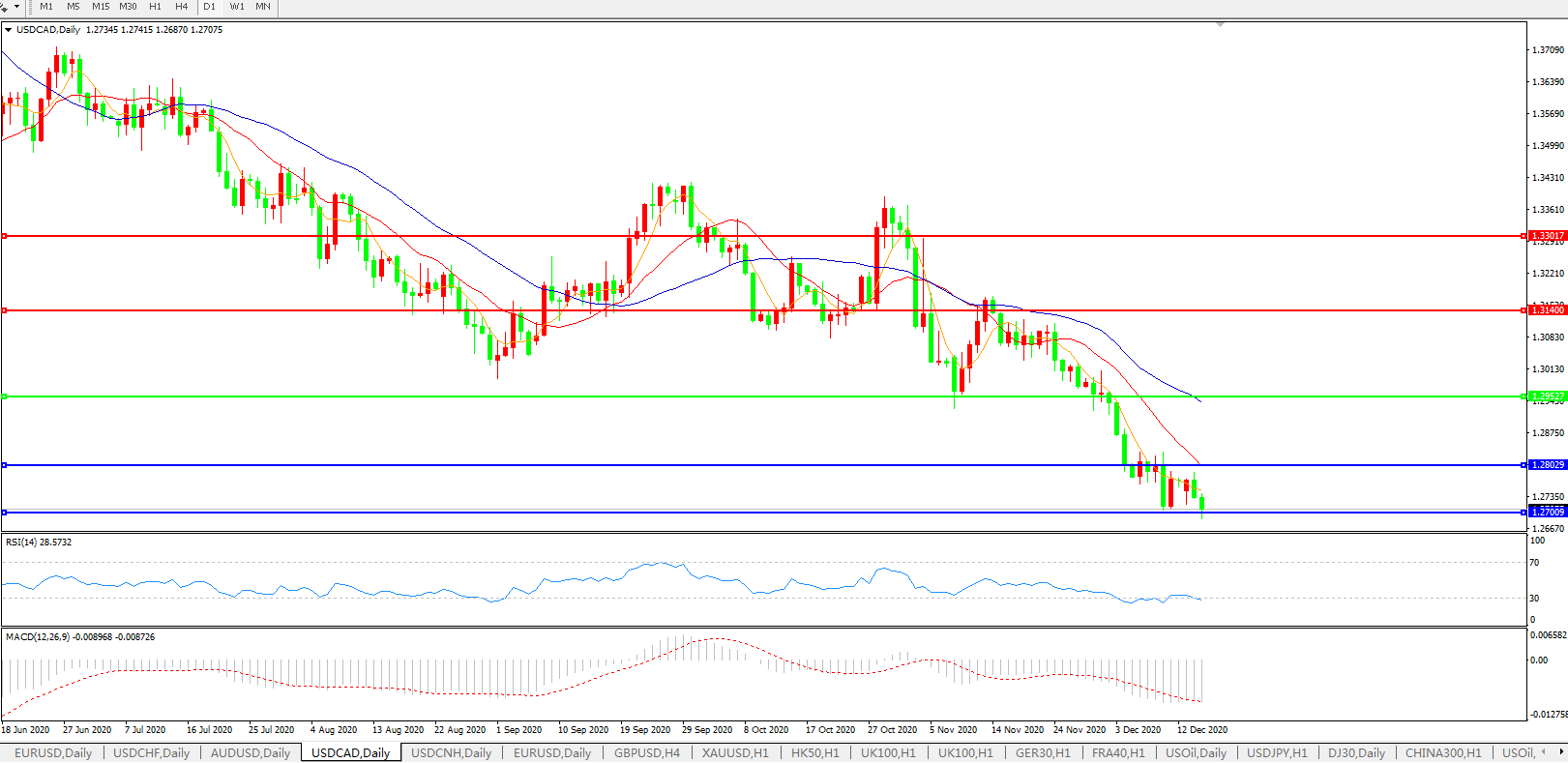 美元兑加元USDCAD    日线图: