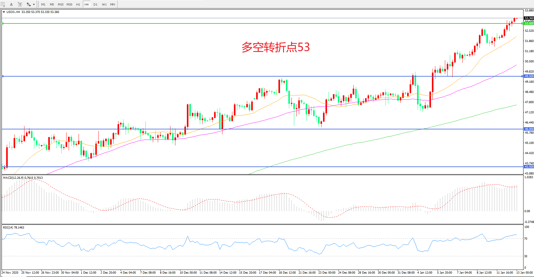美国原油USOIL 4小时图