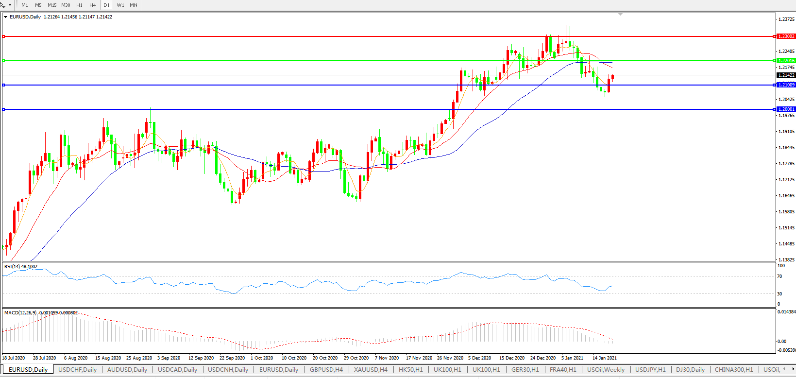 欧元兑美元EURUSD 日线图: