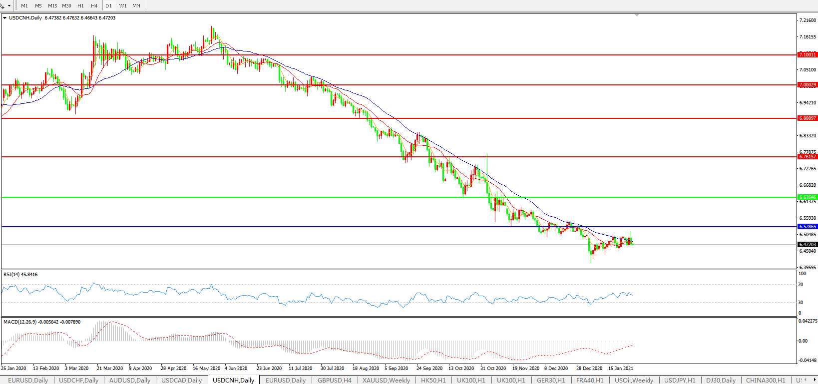美元兑人民币USDCNH    日线图: