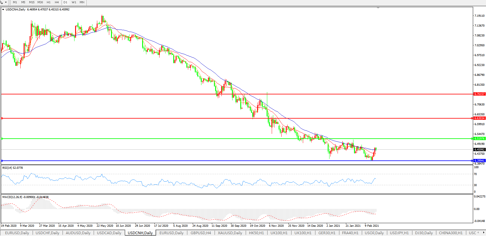 交易策略: 在6.5200之下,看跌,目标价位为6.4000,然后为6.2000。