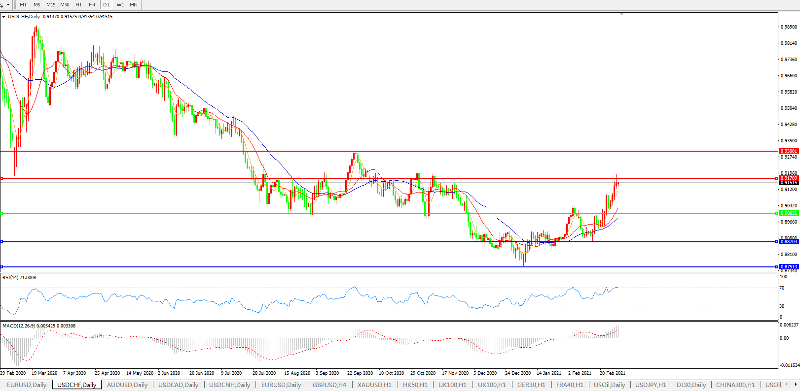 美元兑瑞郎USDCHF 日线图: