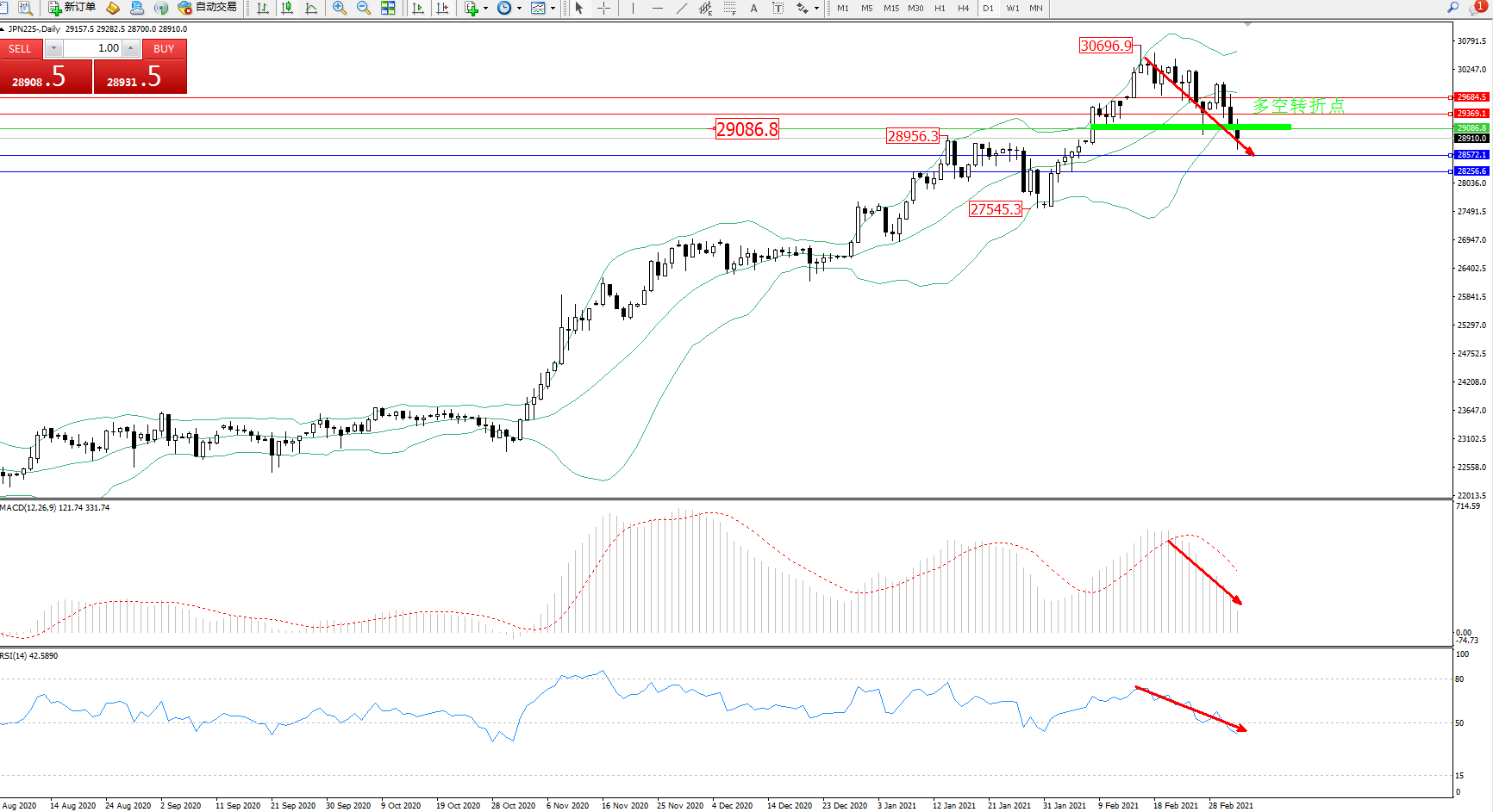 日经225指数3月4日(周四)收盘下跌632.60点,跌幅2.14%,报28926.50点。日经刺穿29000.00关口,美联储相对于全球央行的更陡峭、更接近正常化的路径,开始推涨美元,美债收益率暴涨,引发全球股市震荡。美债收益率的运行速度正在变快的同时,恰逢硬通货和新兴市场本地债券更容易受到影响,估值越来越高,头寸也越来越拥挤,新兴市场债券的缓冲能力有限,无法应对10年期美债收益率从当前约1.5%的水平进一步上行。如果10年期美债收益率继续攀升到2%,则可能触发大量资金从硬通货和新兴市场本地债券中流出。日本政府上调消费者信心指数的评估,称消费者信心指数依然严峻,但正在回升。据日本共同社:日本神奈川县新增138例新冠肺炎确诊病例,新增10例死亡病例。东京新增279例新冠肺炎确诊病例。