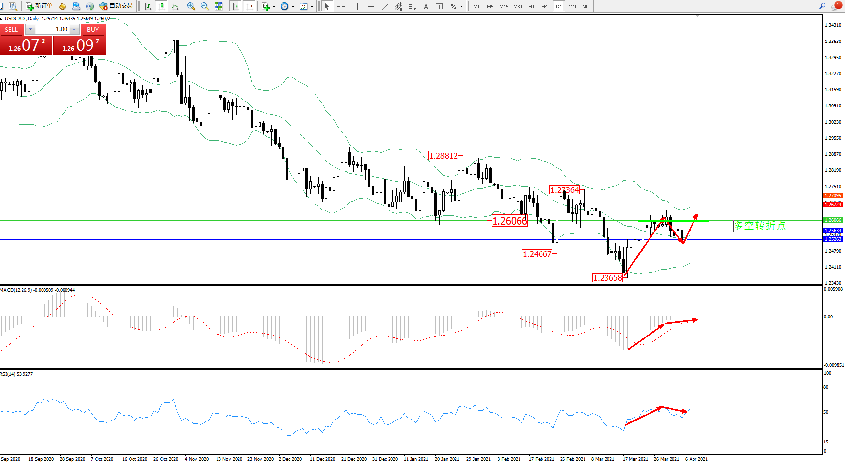 交易策略:1.26066上方看涨,目标1.26724、1.27095