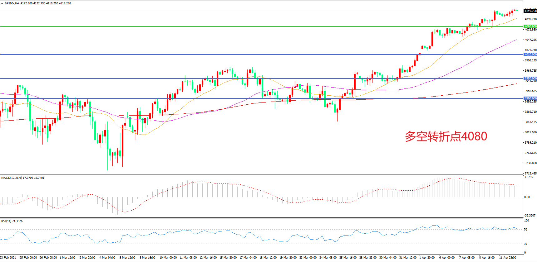 多空转折点:4080.00