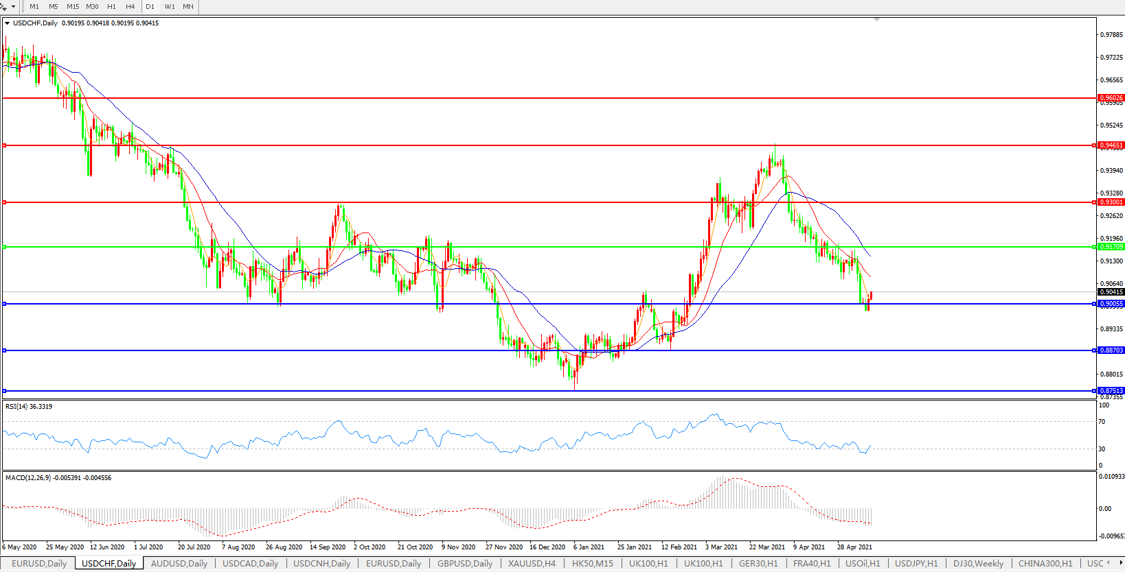 美元兑瑞郎USDCHF 日线图: