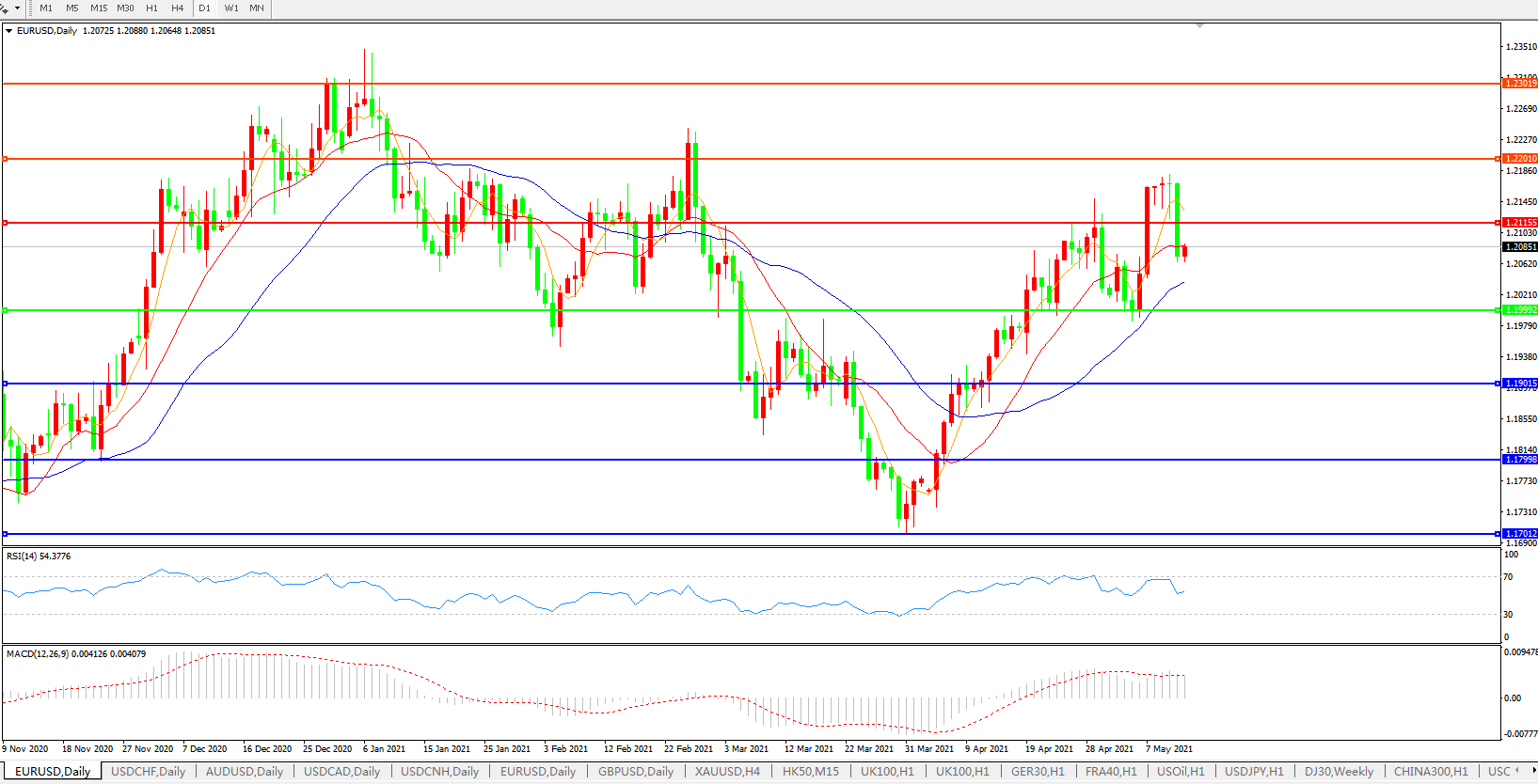 欧元兑美元EURUSD 日线图: