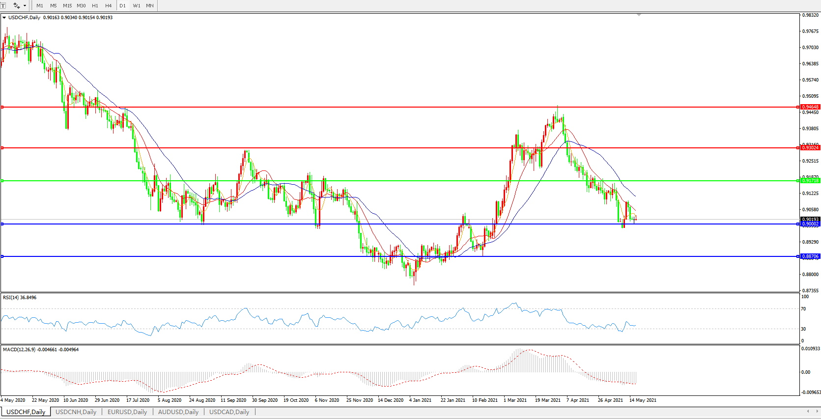 美元兑瑞郎USDCHF 日线图: