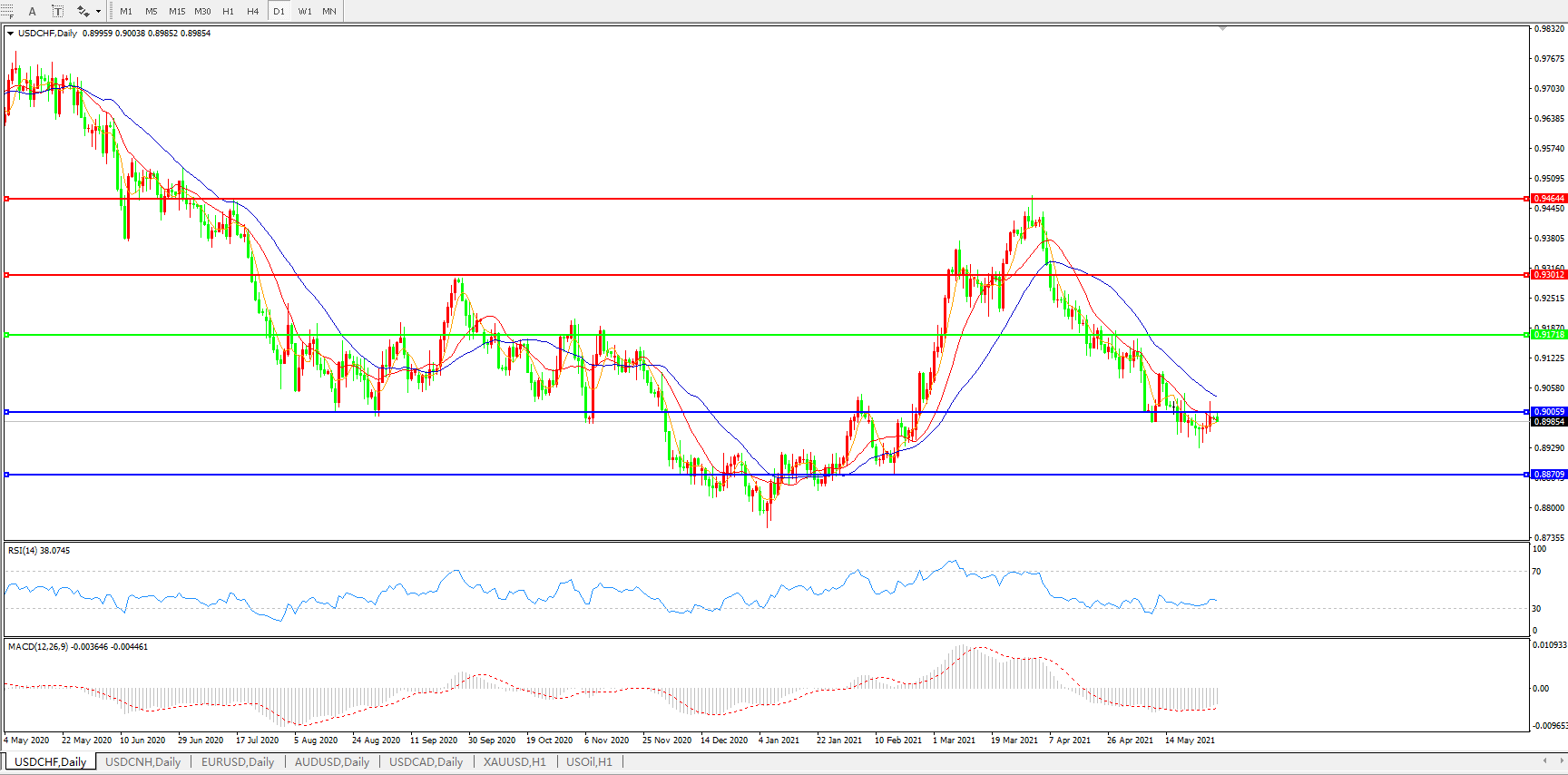 美元兑瑞郎USDCHF 日线图: