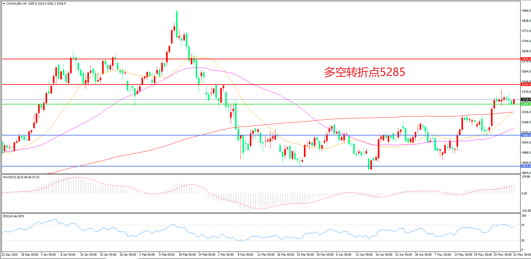 多空转折点:5285.00