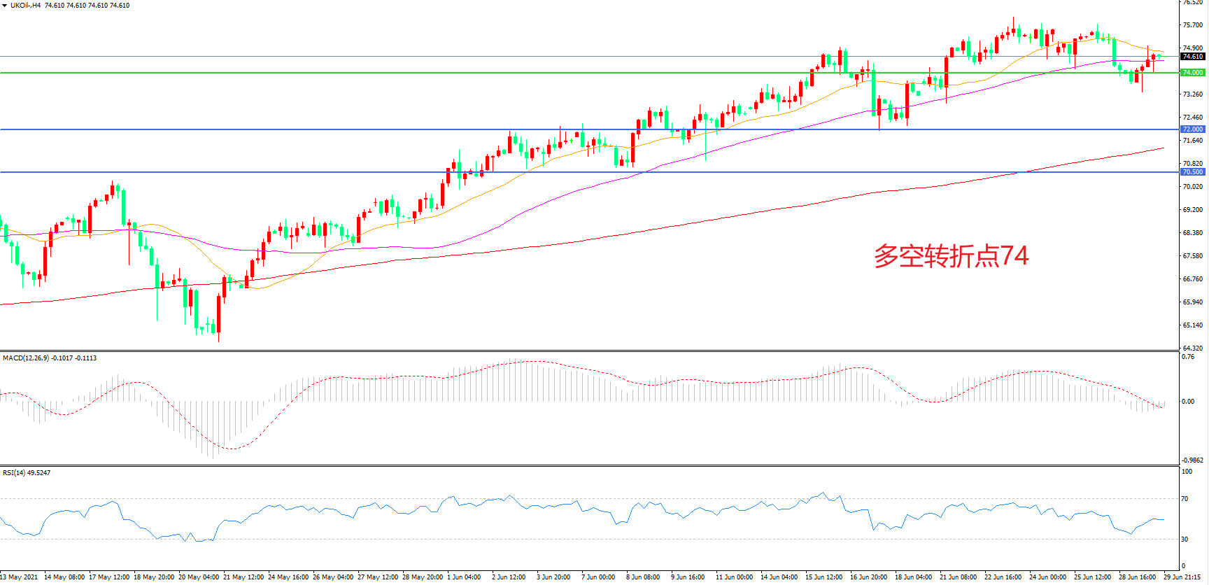 周二(6月29日),因俄罗斯与沙特之间再度出现分歧,OPEC +联合部长级监督委员会会议将从周三推迟至周四,投资者重点关注Delta病毒传播态势,布伦特原油延续高位震荡,收报74.61美元/桶。今日凌晨公布的数据显示,当周API原油库存骤降820万桶,远超预期的446万桶,对油价有所提振,如果晚间EIA与此表现一致,油价有望迎来新的上涨。