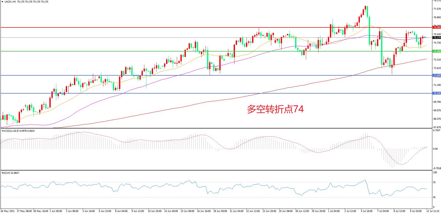 交易策略:在74.00之上看涨,目标76.00    78.50
