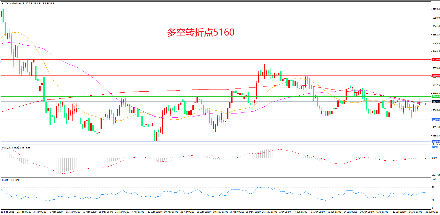 多空转折点:5160.00