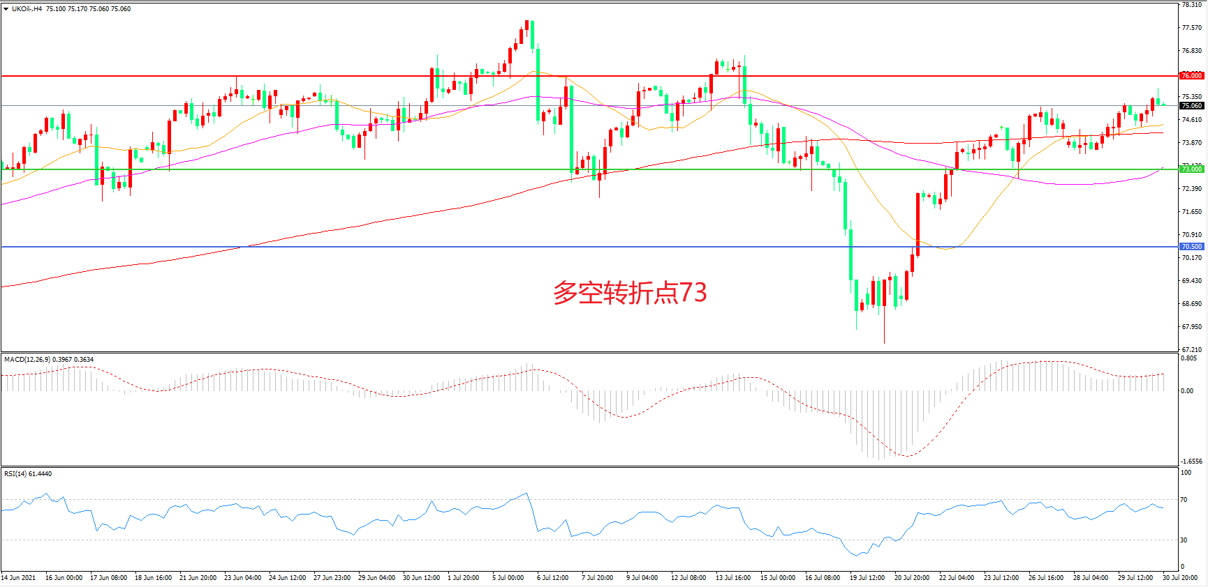 交易策略:在73.00之上看涨,目标76.00               79.00