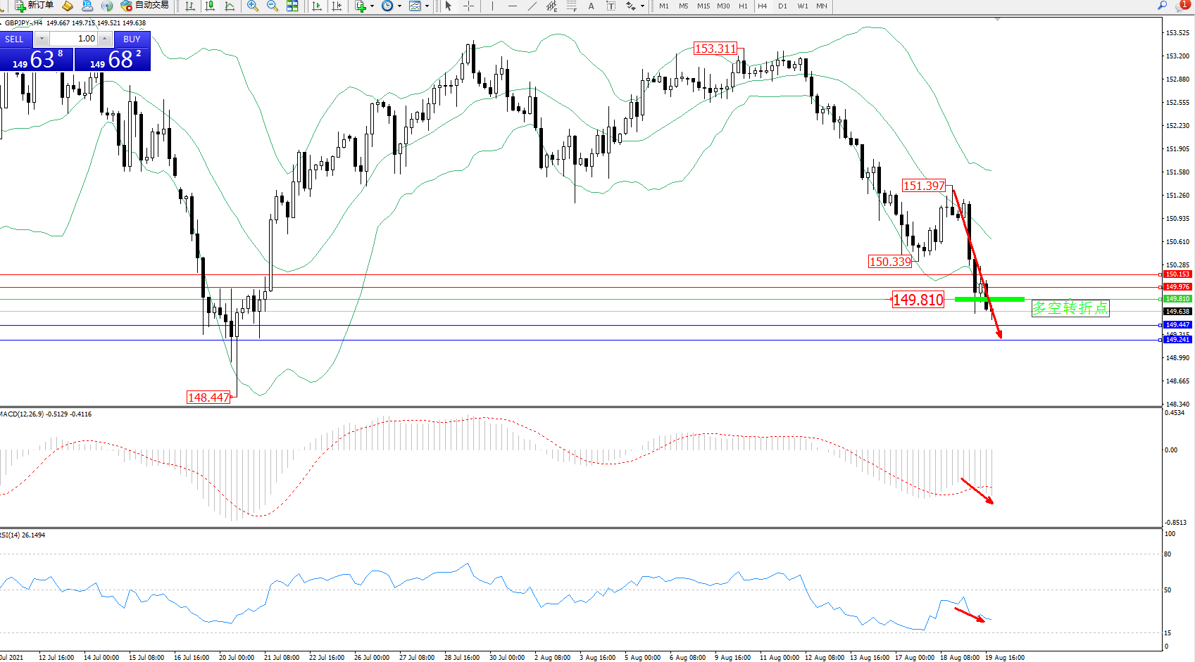 英镑兑日圆持续震荡下挫至149.638附近震荡,美国消费者在应对新冠肺炎病例激增方面变得更加谨慎。美联储7月政策会议的纪要显示,多数与会官员认为可以在今年开始减码,投资者维持谨慎且美元继续走强。美国政府债券下跌,将美债收益率推高至周震荡区间的上沿,英国7月份数据疲软,英经济恐难短时间恢复。