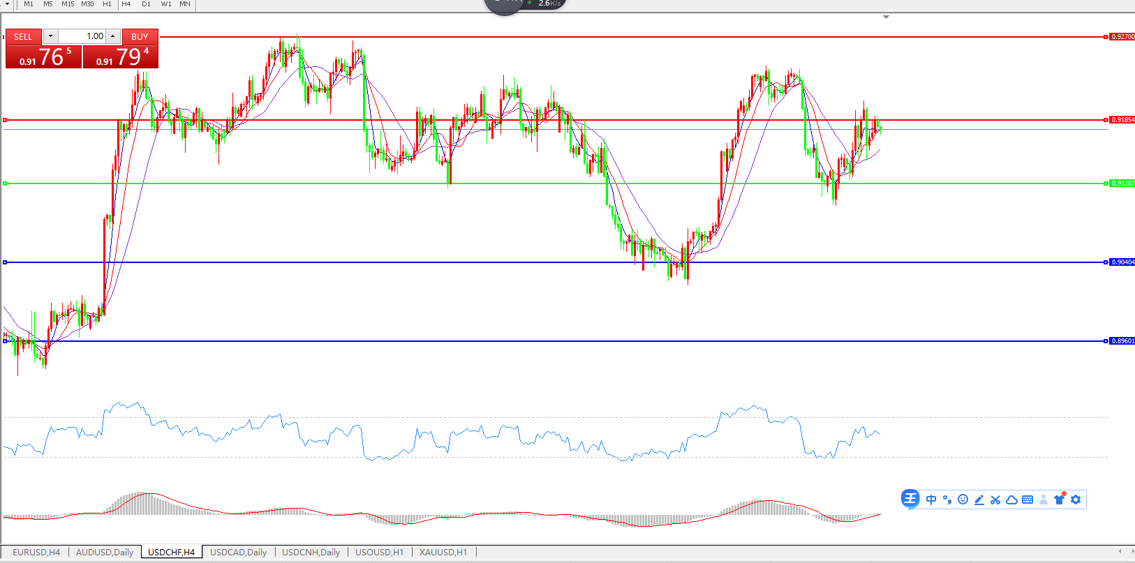 美元兑瑞郎USDCHF 4小时图: